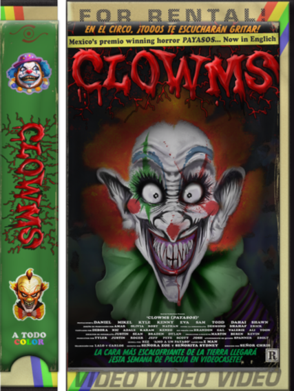 Choco likes chocolate, Korny likes Candi Corn, Ruffles... he just likes killing. When sugar crazed CLOWMS run out of los dulces, they're coming for yurs. Don't let them get yur Chompis! They'll sabotach machins and eat you alaif. Your favorite Englich remake of the critically acclaimed Espanich original PAYASOS direct to VHS!